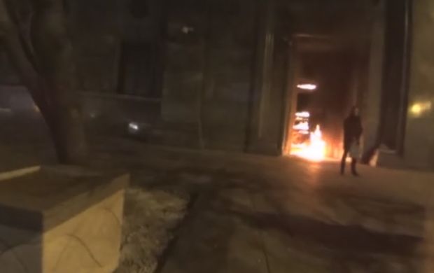 Павленский облил входную дверь из канистры, затем поднес зажигалку и поджег. После этого появились сотрудники полиции, которые задержали самого художника, а также 2 журналистов. Это происходило примерно во втором часу ночи по московскому времени.