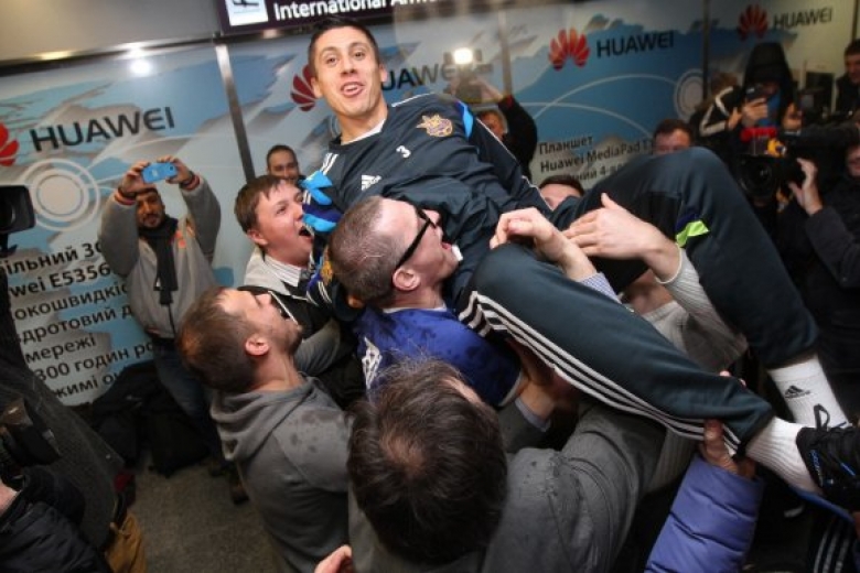 Первым из зоны таможенного контроля вышел Александр Кучер, который молнией убежал к выходу, немного дольше задержался с болельщиками вышедший следующим Вячеслав Шевчук. А после 36-летнего ветерана сборной вышел Михаил Фоменко. Главного тренера встретили овациями и засыпали конфетти, и даже в этот рулевой национальной команды не проявил почти никаких эмоций, лишь слегка улыбнулся.