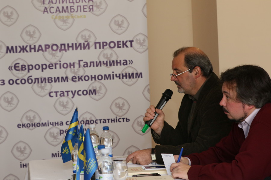 Участники круглого стола отметили, что очень важно не забывать о близости границы с Польшей, которая, наконец, должна начать давать нам перспективы развития, а не создавать барьеры. Для этого, по мнению выступающих, можно было бы инициировать создание специального еврорегиона «Галичина» - на территориях, которые когда-то принадлежали к этому историческому образованию.