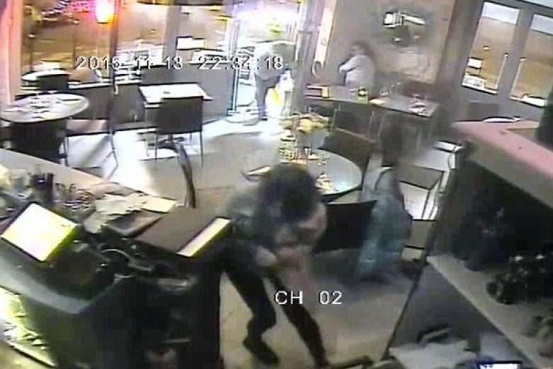 Британская газета Daily Mail опубликовала видеозапись с камер наблюдения, на которой запечатлена стрельба террористов в одном из парижских ресторанов во время терактов в Париже 13 ноября.