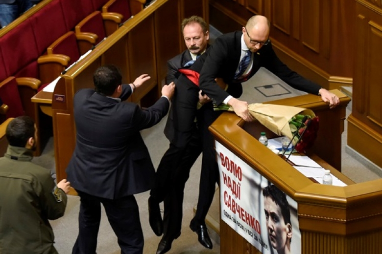 – Как раз час вопросов не состоялся, потому что его не дал начать Барна, умело унося Яценюка в разных позах прямо с трибуны. А дальше началась совершенно потрясающая история. Начался совершенно неожиданный конфликт грузина и армянина на украинском поле, который наблюдал лично президент. В свое время был другой конфликт между Юрием Луценко и тогда еще мэром Киева Леонидом Черновецким на глазах другого президента. Правда, тогда один из них чуть ли не калекой вышел из ситуации, а тут все миром, по дружбе. Моршинская летит со стаканом, но все целы. И опять никто не вспоминает о Яценюке и его "потрясающих успехах".