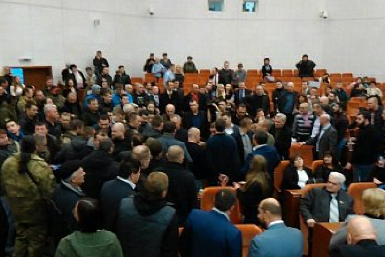 Позднее конфликт усугубился, когда депутаты от партии УКРОП Андрей Денисенко и Евгений Терехов потребовали от депутатов Оппозиционного блока покинуть сессионный зал горсовета. Через некоторое время в сессионный зал Днепропетровского горсовета зашли представители подразделения милиции особого назначения.
