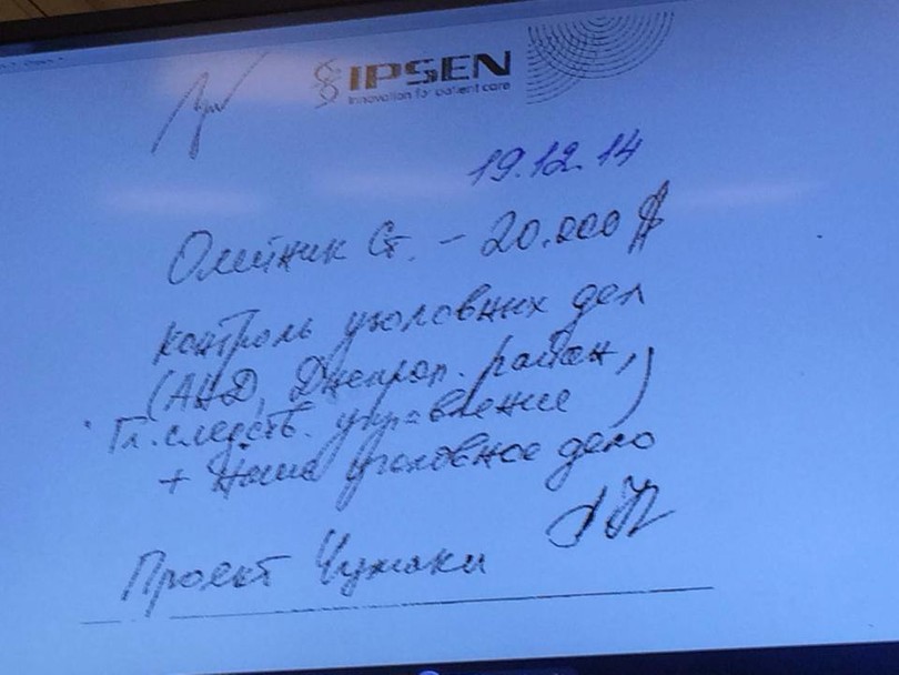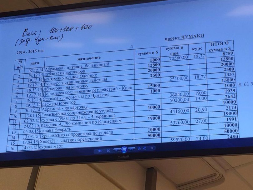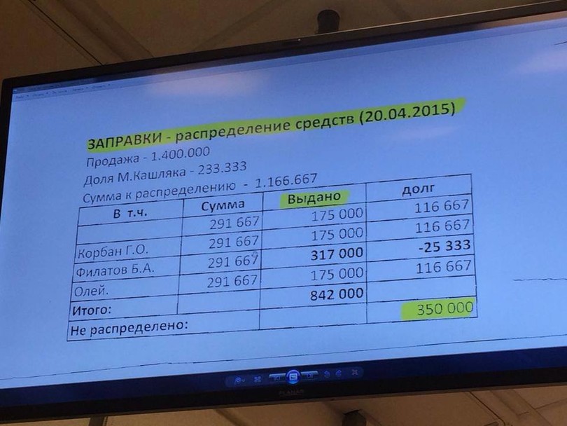 ГПУ нашли у Корбана черновые записи о перечислении средств в "Фонд обороны страны", финансировании членов политической партии УКРОП, размещении заказных материалов в СМИ, оплате участия общественности в различных мероприятиях, финансировании избирательных кампаний, выплате "зарплат" работникам районных отделов милиции, судьям районных судов Днепропетровска и других украинских судов за различные услуги типа снятия арестов со счетов предприятий, контроль и сопровождение уголовных производств и тому подобное.