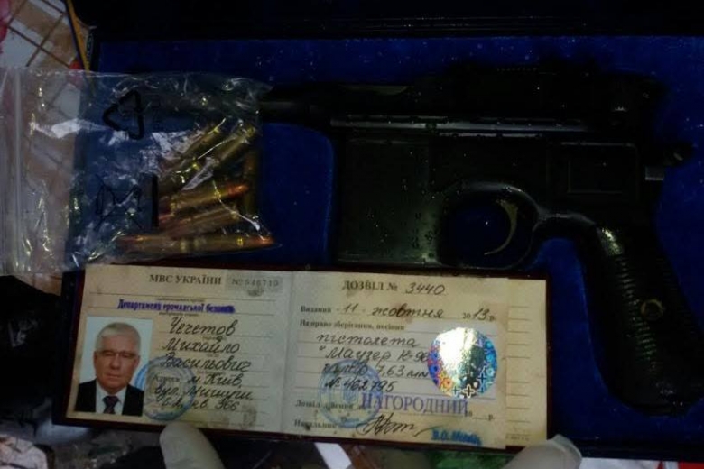 Как сегодня сообщаили на странице столичной прокуратуры в Facebook, следователи киевской прокуратуры совместно с сотрудниками Национальной полиции провели обыски в Киеве в рамках расследования по факту незаконного производства патронов. В ходе обыска в частном доме в Дарницком районе столицы были обнаружены наградной пистолет "Маузер К-96" и разрешение на право его хранения и ношения, выписанное на имя бывшего народного депутата Михаила Чечетова.