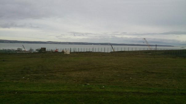 Желающих полюбоваться на будущий Крымский мост в районе Бочарки теперь встречают проволочное ограждение и охрана.