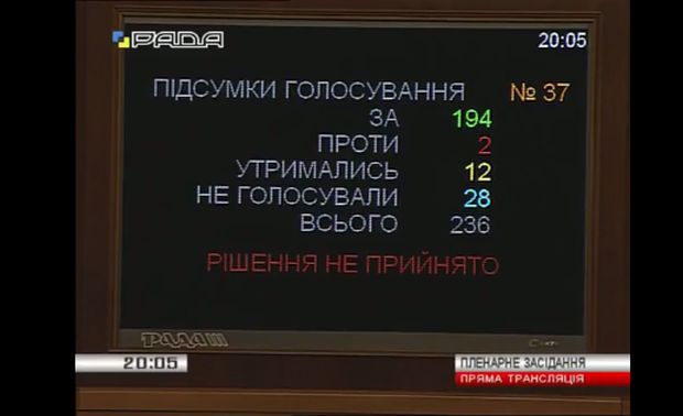Верховная Рада не сумела отправить Кабинет министров в отставку. За постановление о недоверии правительству проголосовало 194 народных депутата при 226 минимально необходимых.