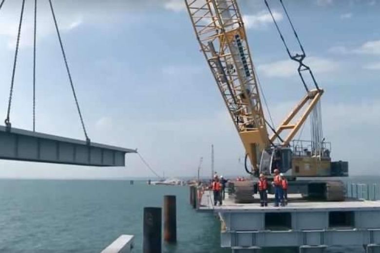 В Сети опубликовали новое видео строительства Керченского моста, который соединит Российскую Федерацию с аннексированным украинским полуостровом Крым.