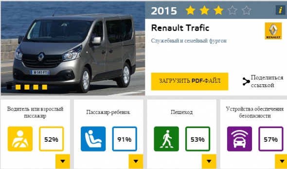 Плохая защита ног пешеходов, невысокий уровень защиты головы. В том числе, в области основания лобового стекла и вдоль жестких передних стоек.