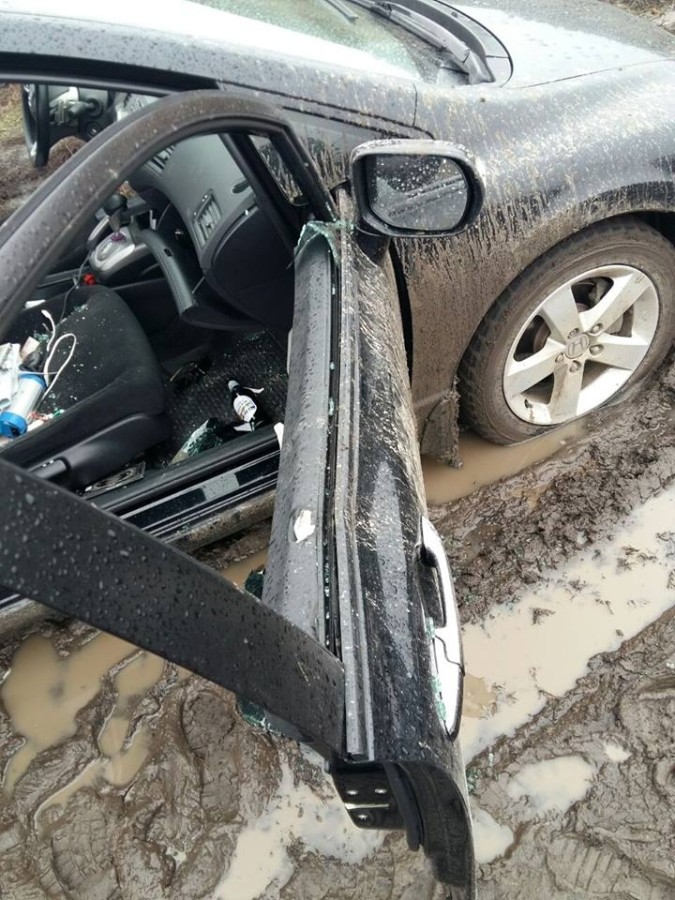 В селе Старые Безрадичи экипажу удалось согнать Honda с дороги в грязь, но водитель продолжал сопротивляться. Тогда один из полицейских прострелил легковушке два задних колеса. После этого авто наконец-то остановилось, но водитель закрылся в салоне и не выходил. Чтобы его задержать, полицейским пришлось разбить боковое стекло!