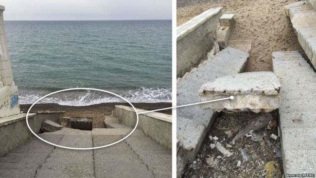 Между тем, пляжи Крыма находятся в плачевном состоянии. В частности, пляж в поселке Николаевка Симферопольского района, чьи снимки появились в сети, не только не обустроен, но и представляет угрозу для жизни потенциальных отдыхающих.