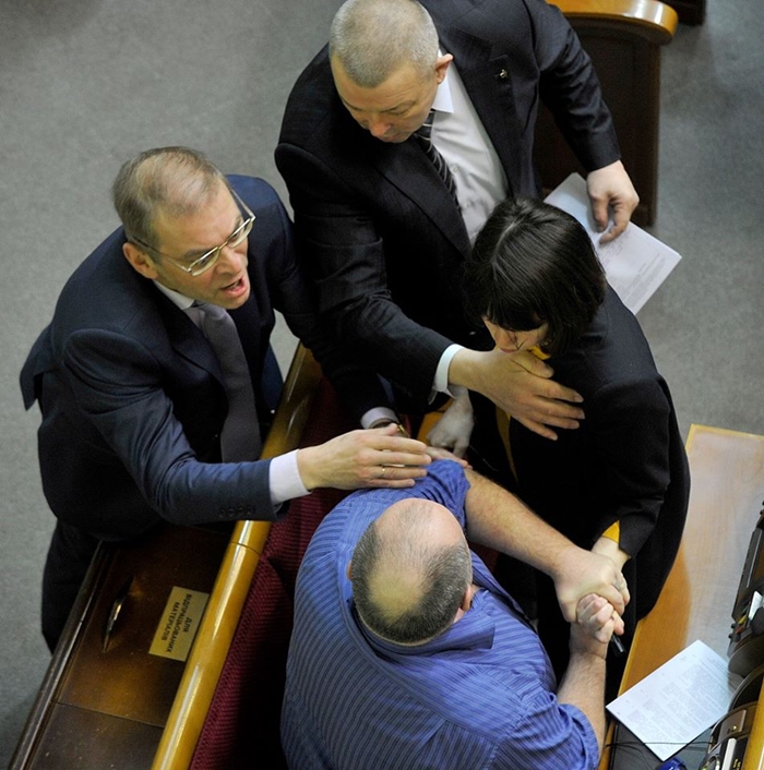 Вскоре после этого в парламенте произошел новый инцидент. Во время обсуждения документа по изменениям норм Уголовно-процессуального кодекса Украины, который касается возвращения государству денег и ценностей до приговора суда, внефракционный нардеп Яков Безбах начал возмущенно что-то выкрикивать. В ответ Татьяна Чорновол подбежала к нему и поцарапала лицо.