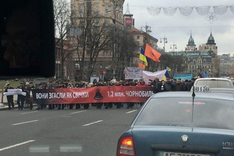 В центре Киева в эти минуты проходит массовая акция протеста. Люди требуют отменить грабительское постановление старого правительства, согласно которому выплаты чернобыльцам были урезаны в два раза.
