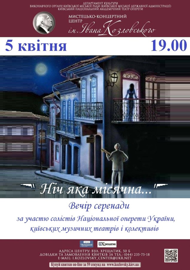 5 апреля в 19.00 вас ждет незабываемая феерия гармонии, красоты, доброты, совершенства - вечер серенады «Ніч яка місячна...».