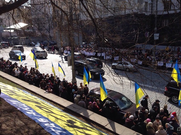 Организаторы также отметили, что на появление плакатов против Порошенко "резко реагировали сотрудники СБУ" - они стали их рвать и забирать у митингующих явно в агрессивной манере".