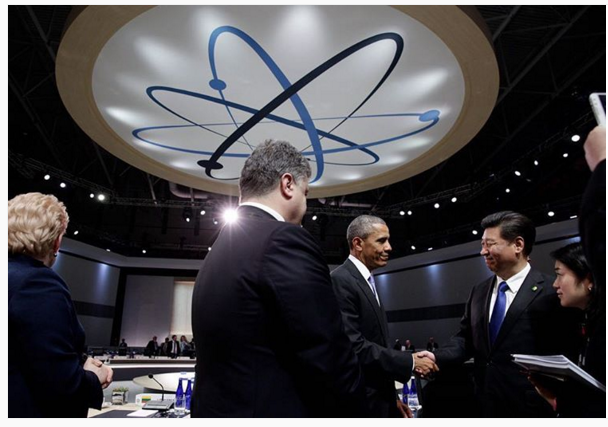 "Президент Обама прощается с лидером Китая Си Цзиньпином по завершении саммита по ядерной безопасности", - прокомментировал снимок фотограф.