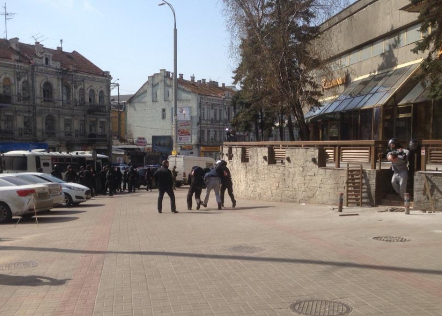Предположительно конфликт возник, когда правоохранители выселили из гостиницы группу людей в камуфляжной форме, которые якобы два года жили в отеле и не платили. В итоге неплательщиков вывели. Пока люди в камуфляже пытались выяснить причины их выселения, силовики забросали их дымовыми шашками.