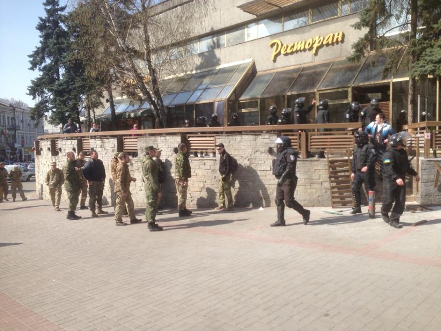По предварительной информации МВД, захват сразу нескольких этажей здания произвели бойцы добровольческого батальона. Как сообщают очевидцы, силовики срочно подтягивают к отелю большие силы, здание окружено бойцами спецназа.