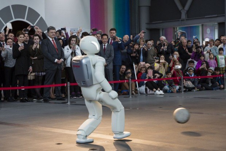 Порошенко продемонстрировали человекоподобного робота ASIMO, космический модуль и климатический мониторинг Земли в режиме реального времени по данным метеоспутников, сообщает пресс-служба главы государства.