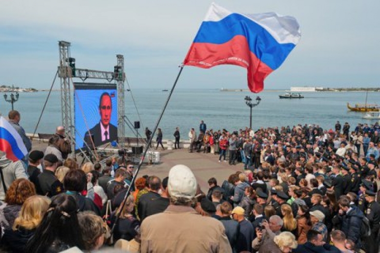 На съезде общественно-экспертного совета при российском губернаторе Севастополя во время исполнения гимна России на большой экран была выведена сатирическая версия его текста. Об этом в эфире одной из радиостанций сообщил заместитель председателя департамента внутренней политики "правительства" Севастополя, подконтрольного России, Владимир Тюнин.