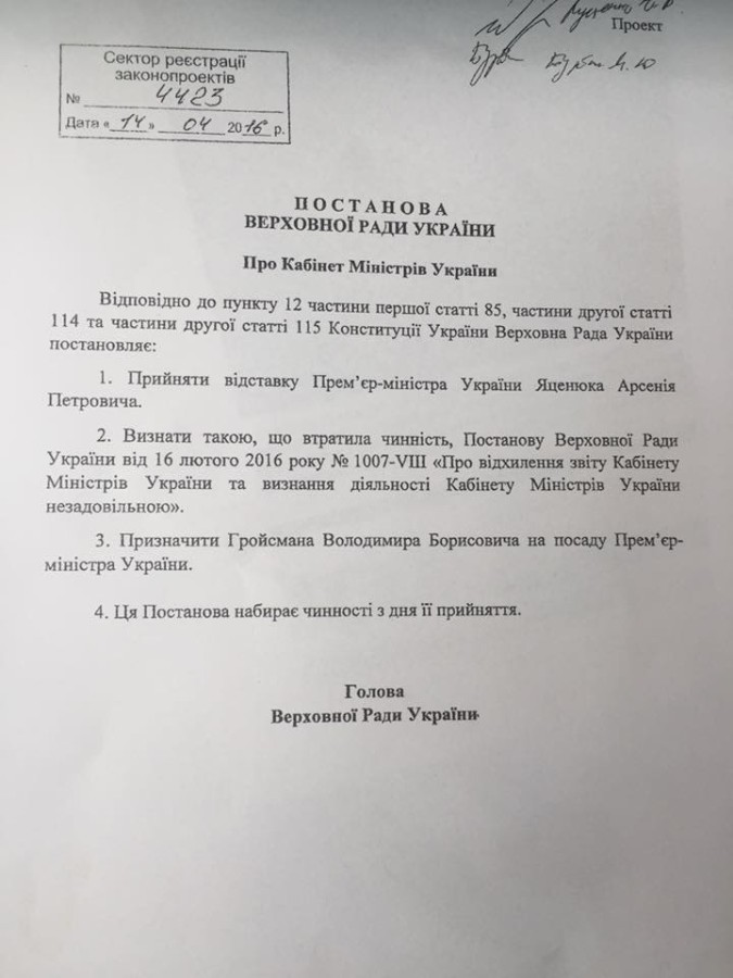 | Гройсман В.Б. | За | Денисенко А.П. | Не голосував |