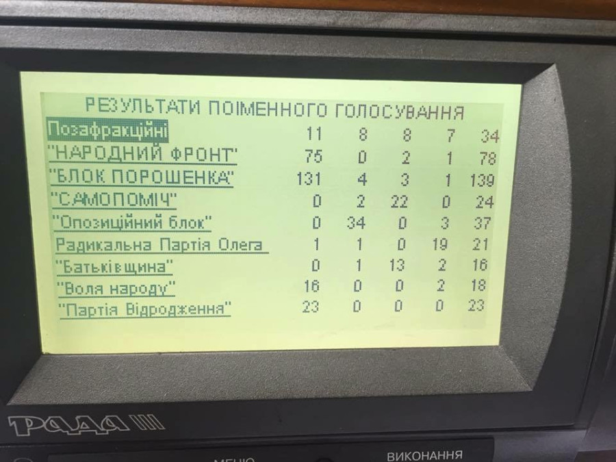 Кількість депутатів - 146 За - 131 Проти - 4 Утрималися - 3 Не голосували - 1 Відсутні - 7 |