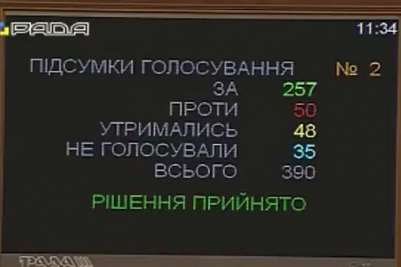 Кількість депутатів - 81 За - 75 Проти - 0 Утрималися - 2 Не голосували - 1 Відсутні - 3 |