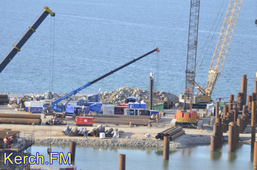 На появившихся в сети фото и видео строительства моста через Керченский пролив видна достаточно активная деятельность и большое количество техники. Видимо, стройка набирает обороты, так как жителей предупреждают о шуме и установке звукоизоляционных экранов.