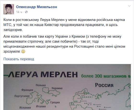 В ростовском магазине сети строительных гипермаркетов Leroy Merlin разместили карту России без аннексированного украинского полуострова Крым.