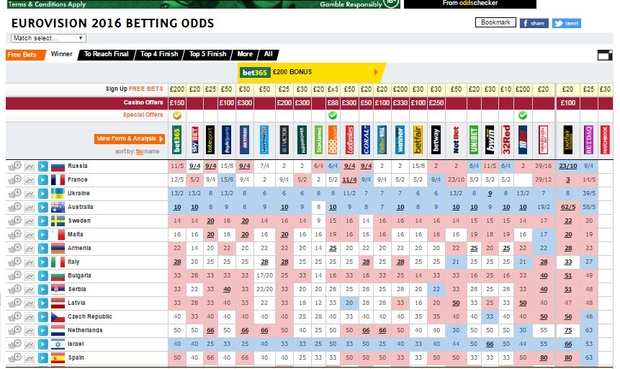 Украинская конкурсантка Джамала по состоянию на 5 мая предварительно занимает 3-е место на "Евровидении", согласно онлайн-голосованию на сайте oddschecker.com.
