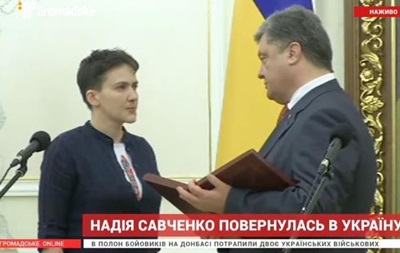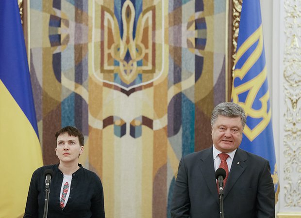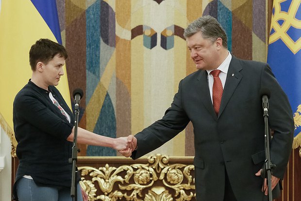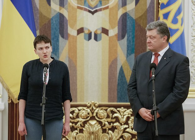 Президент Украины наградил украинскую летчицу Надежду Савченко орденом «Золотой звезды» и присвоил звание Героя Украины.