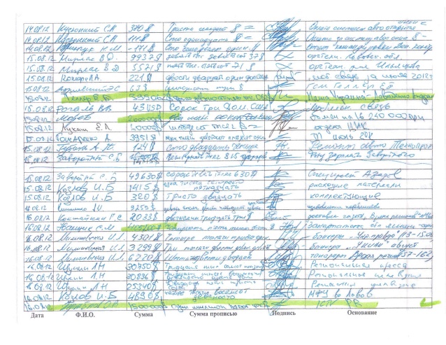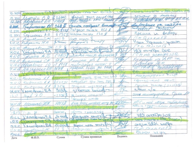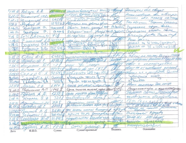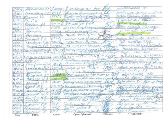 "Фамилии лиц, которые получали, сумма, подпись и на какие цели. Всего в нашем распоряжении есть 22 страницы документов, касающихся второго полугодия 2012 года. Расходы за этот период составили около 66 миллионов долларов на украинскую политику для Партии регионов. При этом часть документов у нас отсутствует. Они касаются основного этапа избирательной кампании 2012 года", - сказал Лещенко.