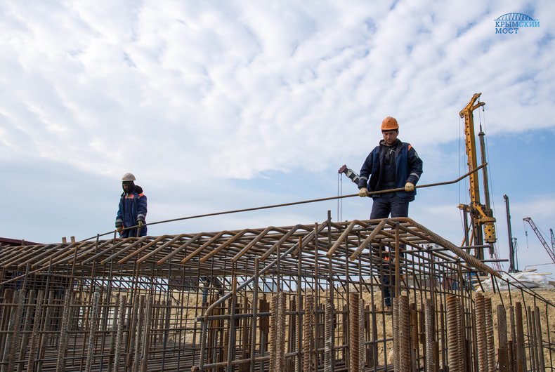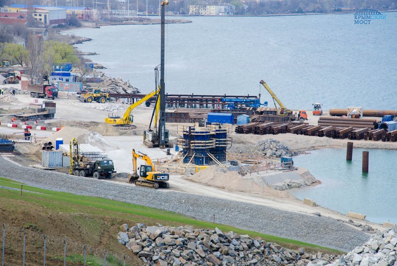 Стапели представляют собой строительные леса из свай, на которых планируется сборка арочных пролетов. Для создания стапелей на глубину до 18 метров уже погрузили более 330 металлических труб разного диаметра. Рядом строятся выкаточные пирсы – по ним собранные арочные пролеты "снимут" со стапелей для перемещения в проектное положение.