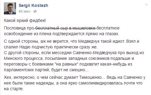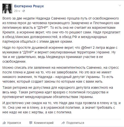 Журналисты собрали мнения о резонансном заявлении Савченко.