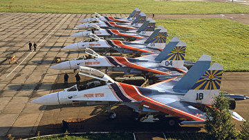 Эскадрилья Русские витязи на авиабазе Кубинка. Архивное фото