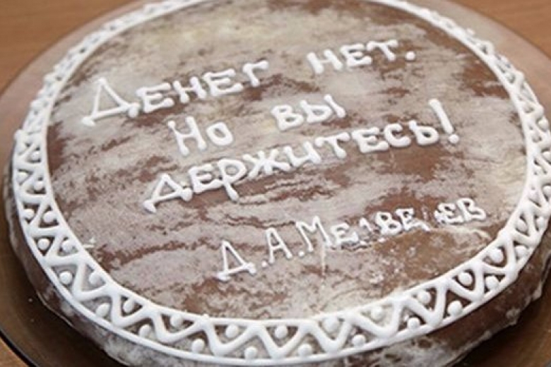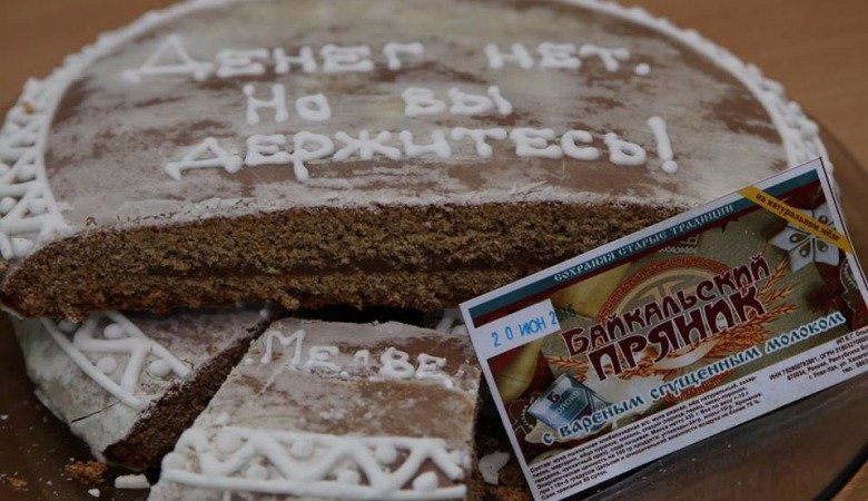 Компания Байкальский пряник получила предписание от бурятских властей с требованием прекратить производство кондитерских изделий с цитатой премьер-министра России Дмитрия Медведева "Денег нет, но вы держитесь!".