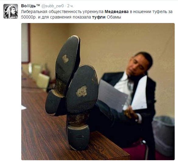 Премьер-министр России Дмитрий Медведев второй день подряд остается в центре внимания: Фонд борьбы с коррупцией Алексея Навального увидел на нем туфли за 50 тысяч рублей