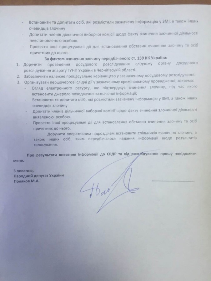 З повідомленням з офіційнійної сторінки Фейсбук Максима Полякова стало відомо про кримінальні оборудки на 206 виборчому окрузі на Чернігівщині, які кришує головний міліціонер Альохін.