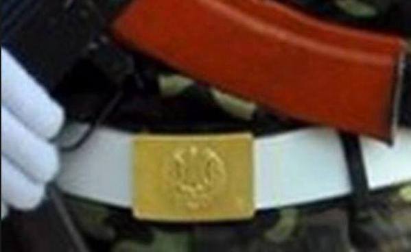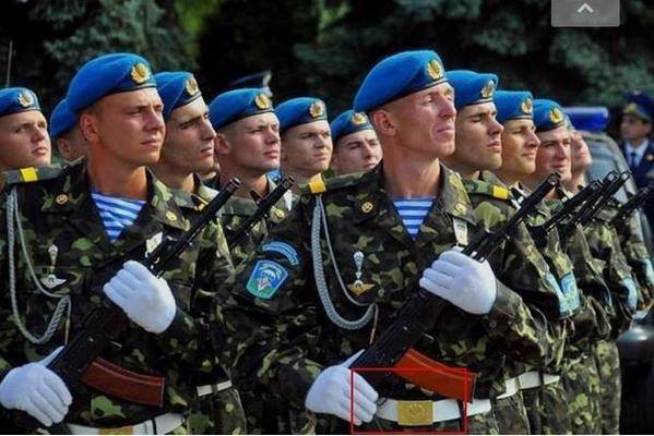 Более того, как отчетливо видно на фото, на парадных поясах марширующих бойцов красуется тризубец.