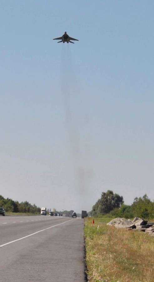 Как оказалось, в ходе учений "Небесный щит-2016" ряд экипажей истребительной авиации ВВС Украины на самолетах Миг-29 совершили учебную посадку и взлет на небольшом участке автомобильной трассы "Киев-Одесса".