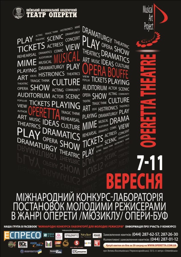 Организаторы конкурсов-лабораторий - Киевский национальный академический театр оперетты, Художественно-концертный центр им. И.Козловського, Киевский экспериментальный театр «Золотые ворота», Государственное агентство продвижения культуры Украины и Продюсерский Центр OpenDoors.