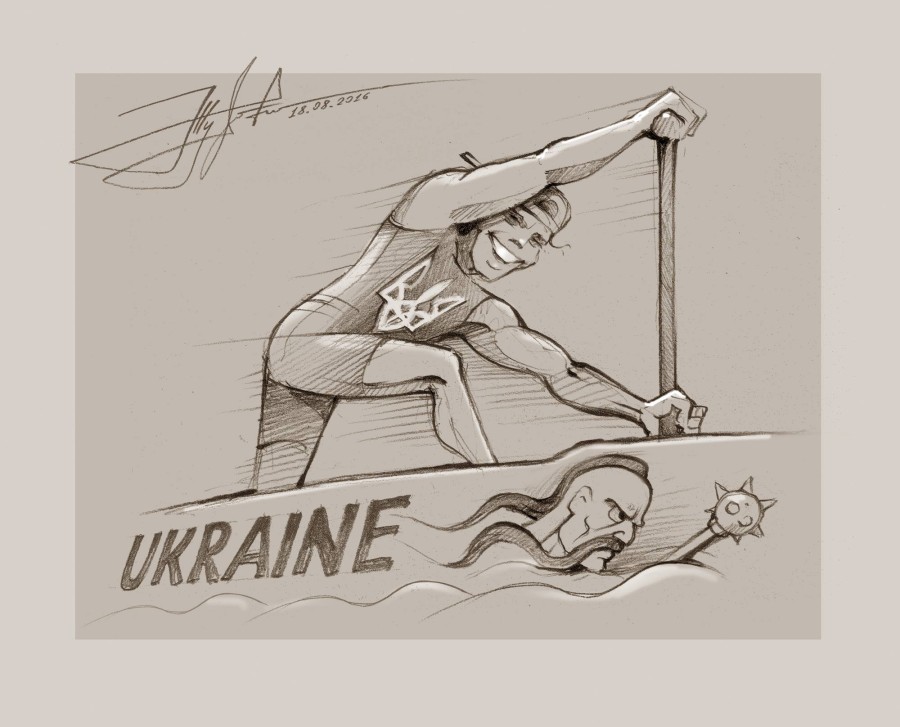 Представляет Вооруженные силы Украины, патриот до мозга костей, а фото его лодки с козаками и булавой облетела все информагентства мира.