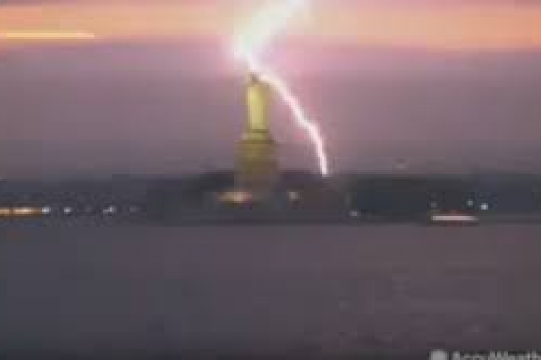 В Нью-Йорке во время сильной грозы молния ударила в факел Статуи Свободы.
