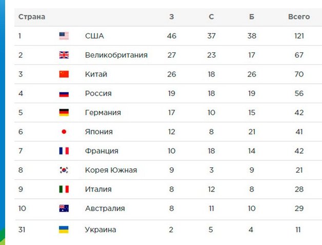В медальном зачете Олимпийских игр в Рио-де-Жанейро Украина оказалась в четвертом десятке.
