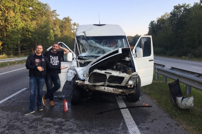 «Говорю сразу, все живы-здоровы, немного побиты, но то такое… водитель уснул на ходу и догнал фуру… смешно то, что после всего водитель фуры подошел и, улыбаясь, сказал, что очень давно хотел с нами познакомиться, жаль что произошло таким образом», — отметил Фагот.