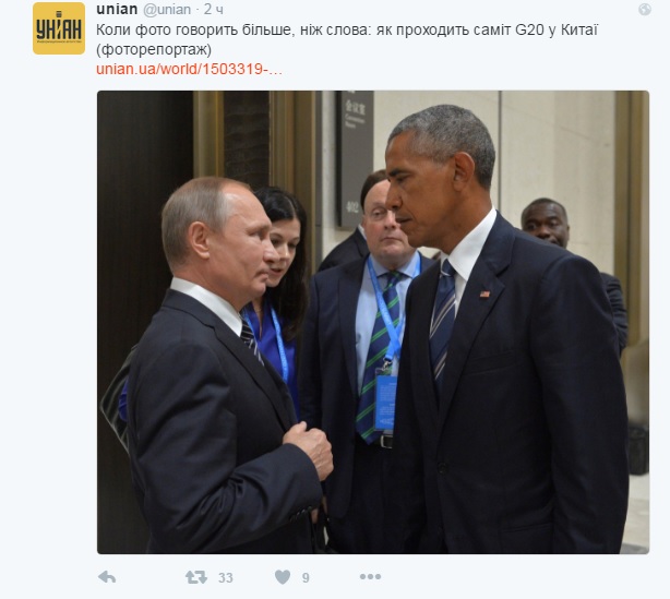 В социальных сетях активно обсуждают фотографию встречи президента США Барака Обамы и президента РФ Владимира Путина в рамках саммита G20 в китайском городе Ханчжоу.