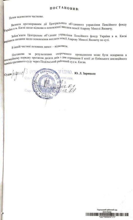 Суд обязал Пенсионный фонд возобновить выплаты экс-премьер-министру Николаю Азарову. Об этом в facebook сообщил вице-премьер Павел Розенко.