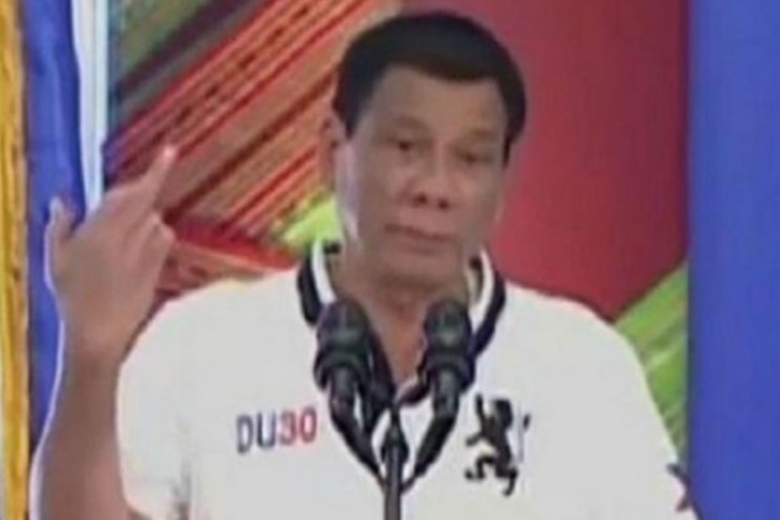 "Я прочитал заявление Европейского союза, и я говорю: катитесь ко всем чертям!" - сказал Дутерте и показал средний палец.