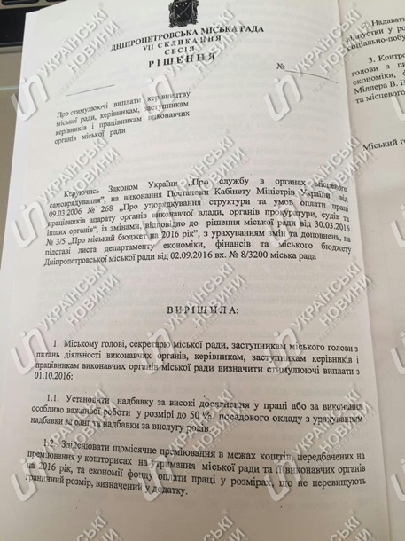 "Осуществлять ежемесячное премирование в границах средств, заложенных на премирование в сметах на удержание городского совета и его исполнительных органов на 2016 год и экономии фонда оплаты труда в размерах, что не превышают граничный размер, определенный в дополнении", - говорится в документе.
