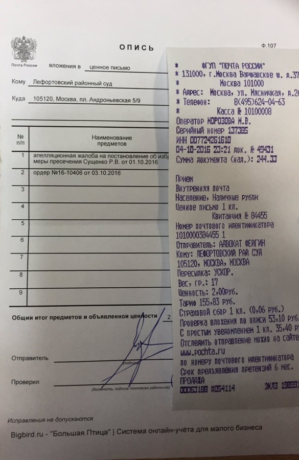 Кроме того, юрист обнародовал ыотокопию апелляционной жалобы на решение суда об аресте украинского журналиста.