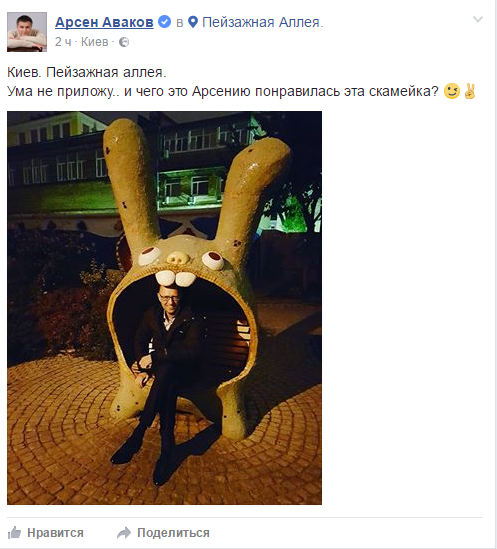 "Трудно понять ... И чего это Арсению понравилась эта лавочка?" - Удивляется Аваков.
